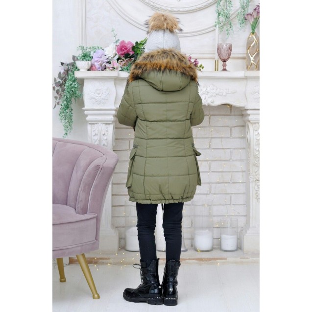 Застежка-молния,съемный капюшон с искусственным мехом,утеплитель силикон