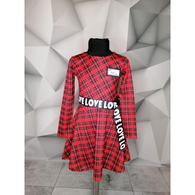 Стильное платье в клеточку с поясом