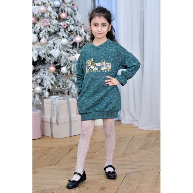 Туника свободного покроя с манжетом по низу, наклейка "Paris"